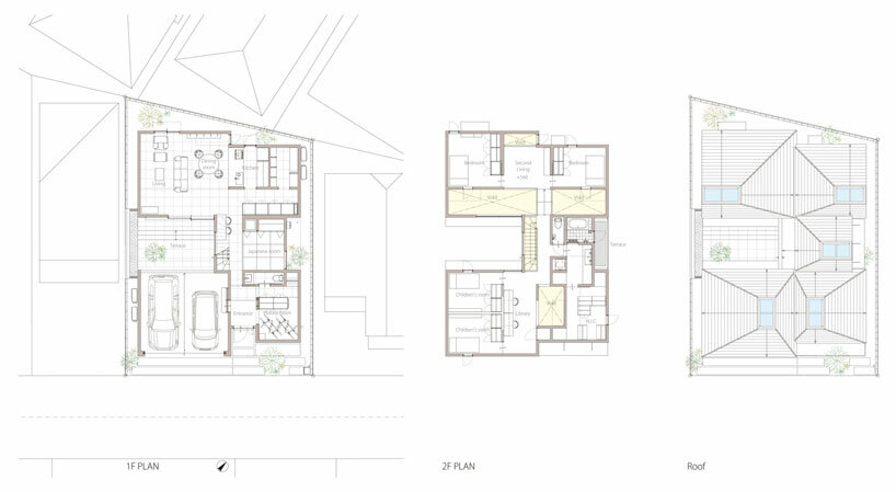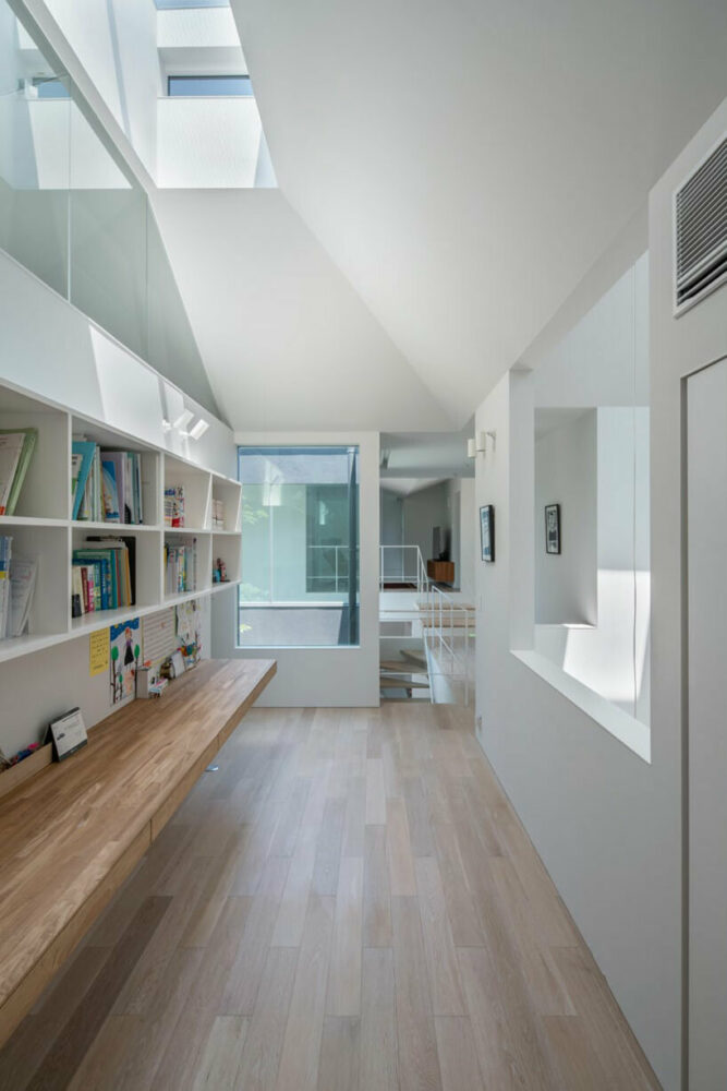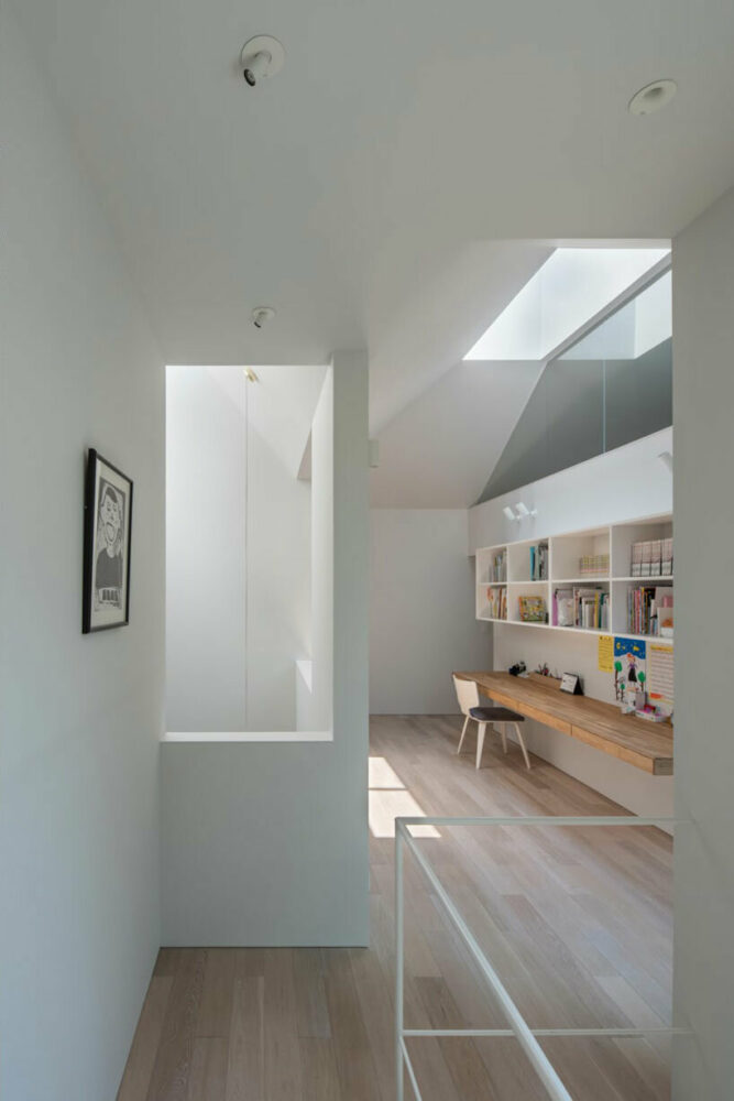 Skylights and carefully placed voids bring soft light into every corner of ‘House in Chikusa’ in eastern Nagoya, Japan. Realized by Suzuki Takamasa Architects for a family of four, the two story dwelling is designed to ensure privacy from neighbors while giving each family their own space.