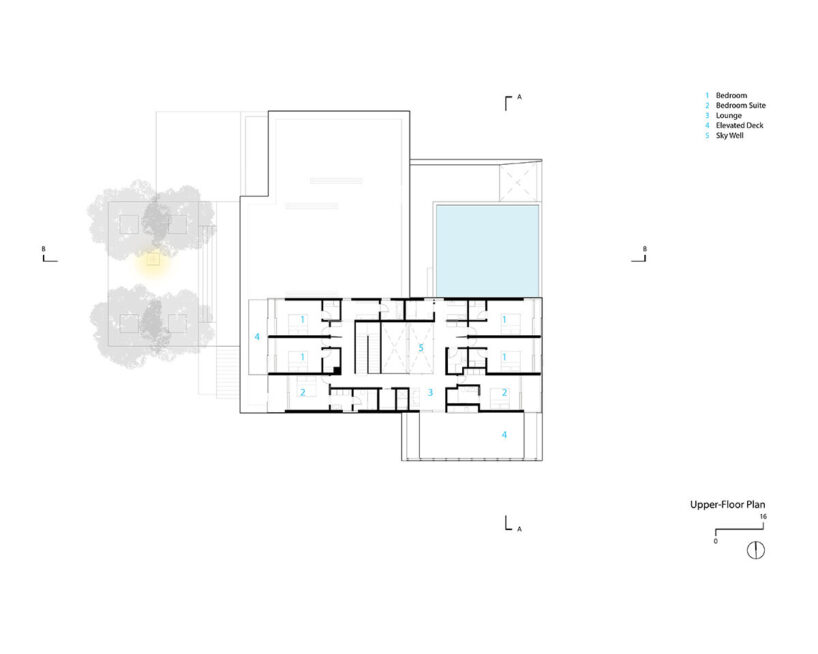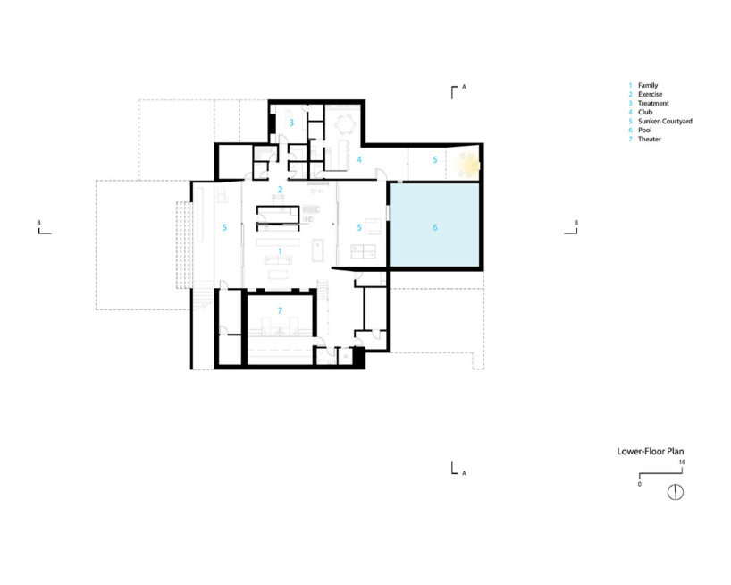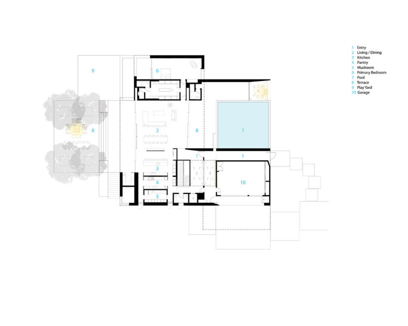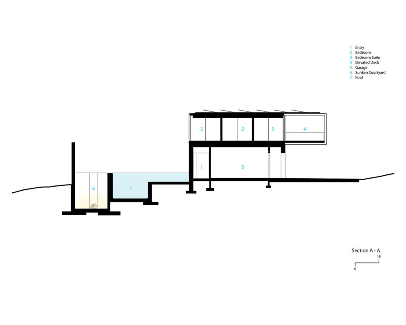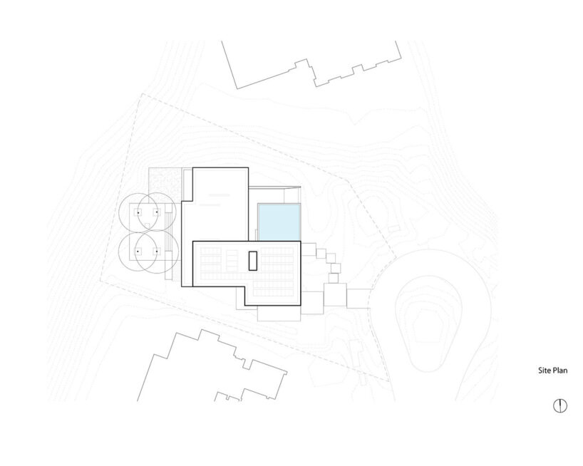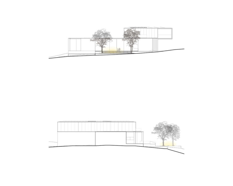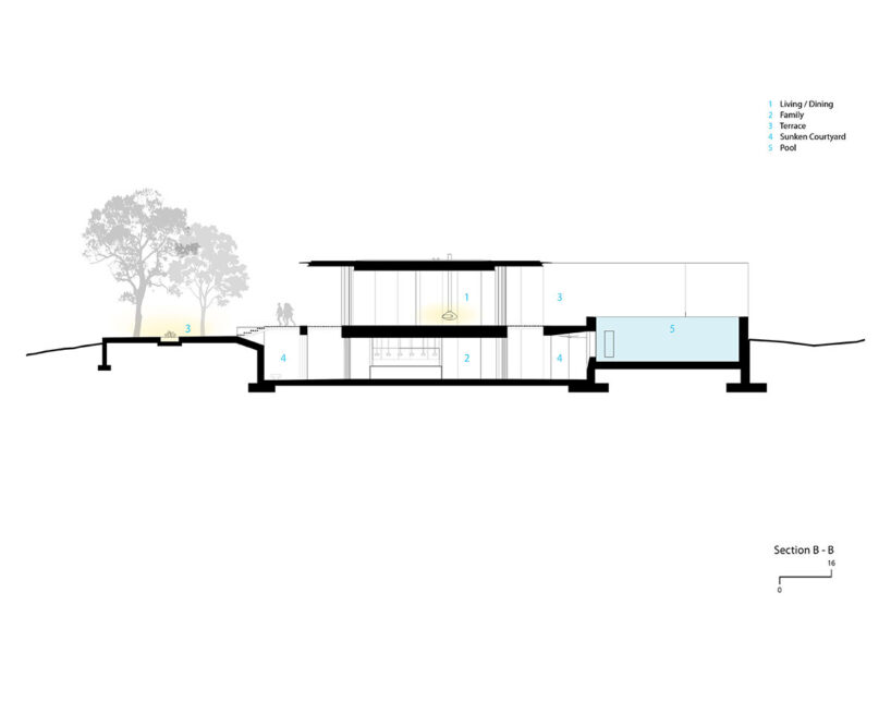 over half the residence is built below grade for thermal stability and indirect daylighting