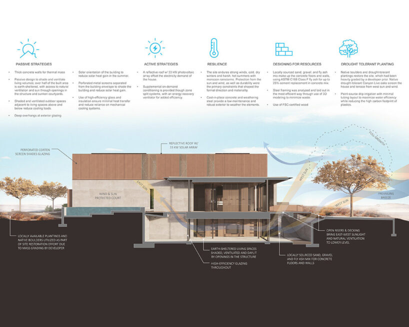 Faulkner Architects designed the home to address extreme heat, wind and sun exposure