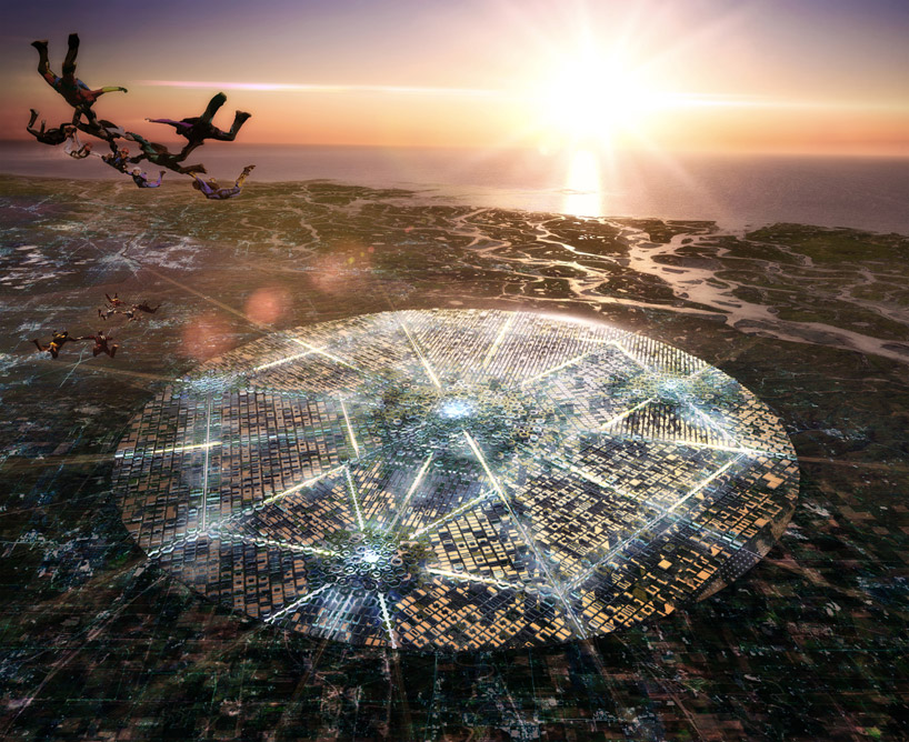 ‘FREE city’ is an urban prototype with a utopian vision designed by mexico city-based practice FREE. the scheme is envisioned to utilize the benefits of radial, hexagonal and rectilinear grids to maintain radial organization, hierarchical zoning and logical growth. the typical block system is superimposed over each sector and hexagonal ring to optimize proximity between locations. an efficient public transit network supports a car-free plan, ensuring residents are never more than an 8 minute walk from a tram station.