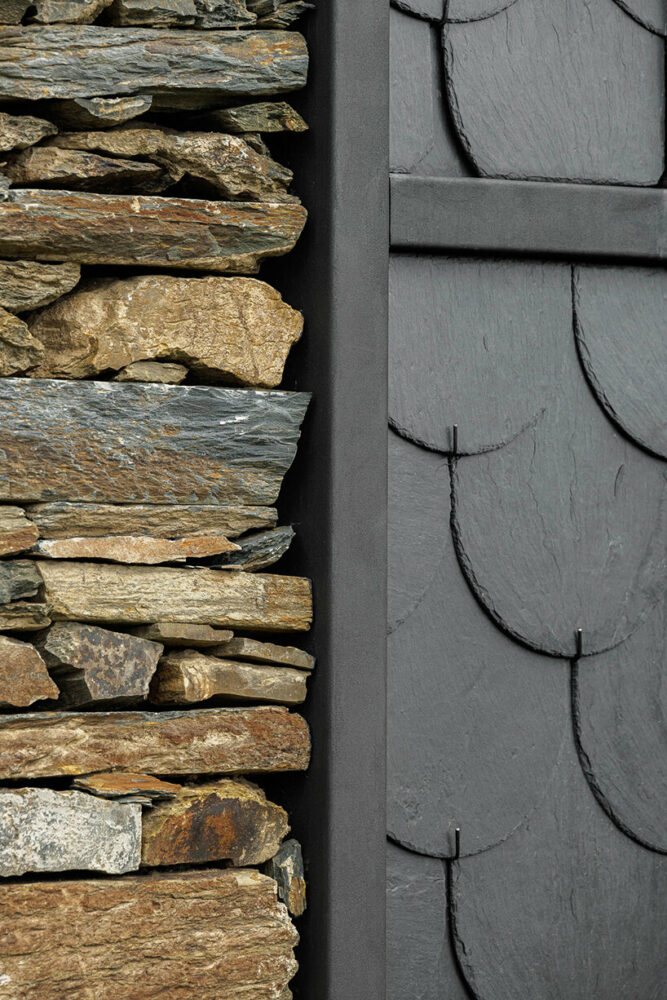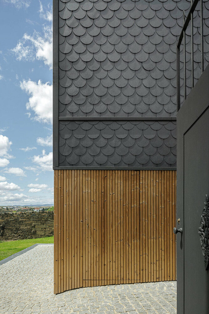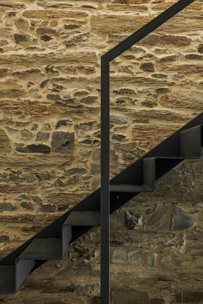 Prior to intervention, the building’s southern elevation suffered extensive alterations, following the needs of its former owners. As a result, this new architectural layering steadily broke away from the original construction. But Pina and his team found a hopeful starting point in the existing slate thresholds and shale masonry structure.