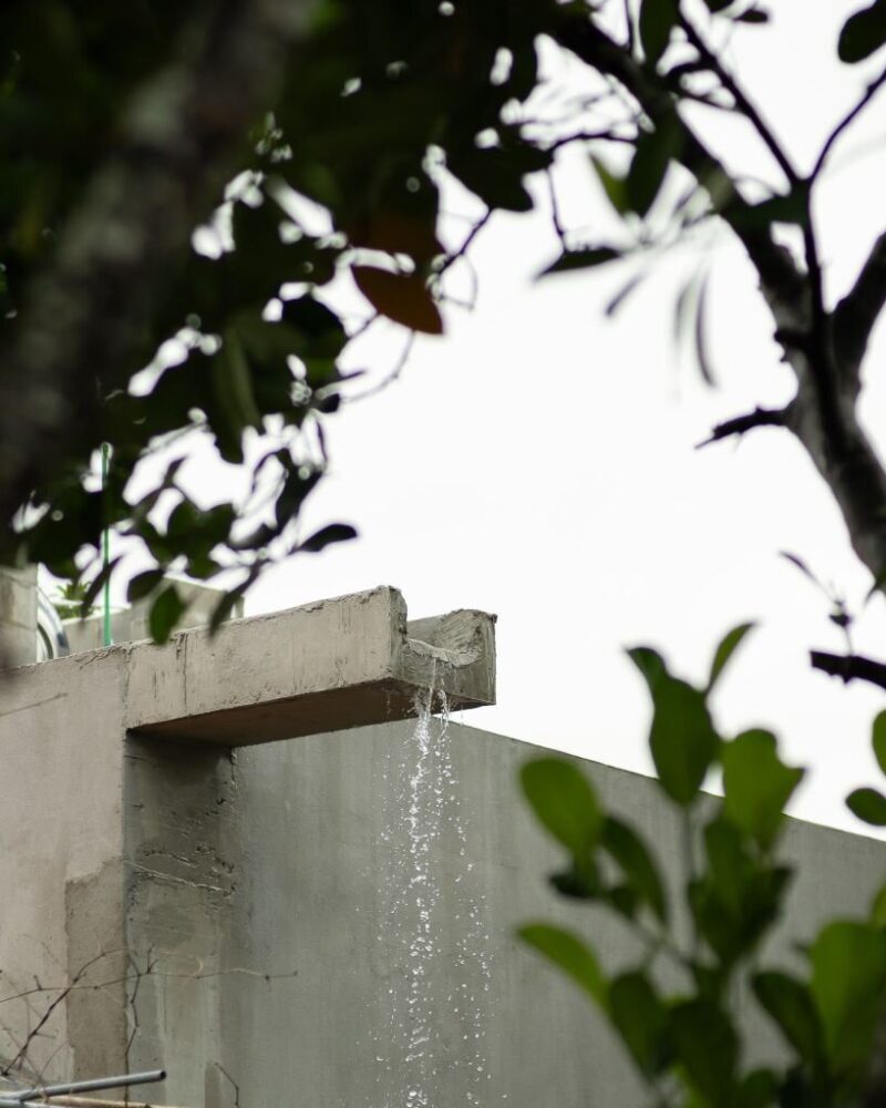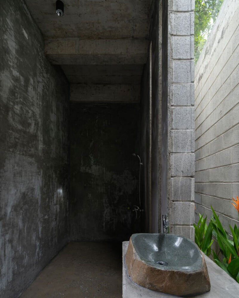 the project sits like a ring placed over the terrain, with its funnel-like roof forming a shaded perimeter walkway and an introverted core.