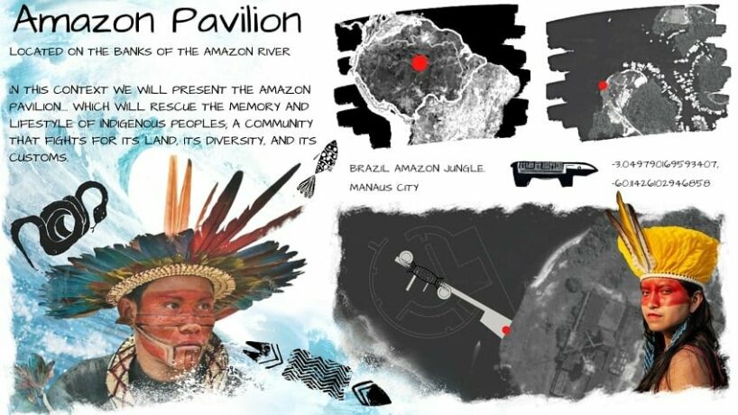 The project memorializes the memory and lifestyle of indigenous people — a community that fought for its land, its diversity, and its historic customs — with a heritage and sustainable development scheme. Representing only less than 5% of the world’s population, indigenous communities protect 80% of global biodiversity. As such, the pavilion is dedicated to preserving the natural elements of the region, incorporating farming and marine areas, algae cultivation and bio energy spaces.
