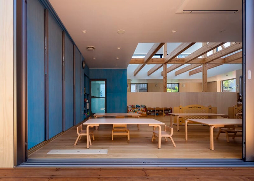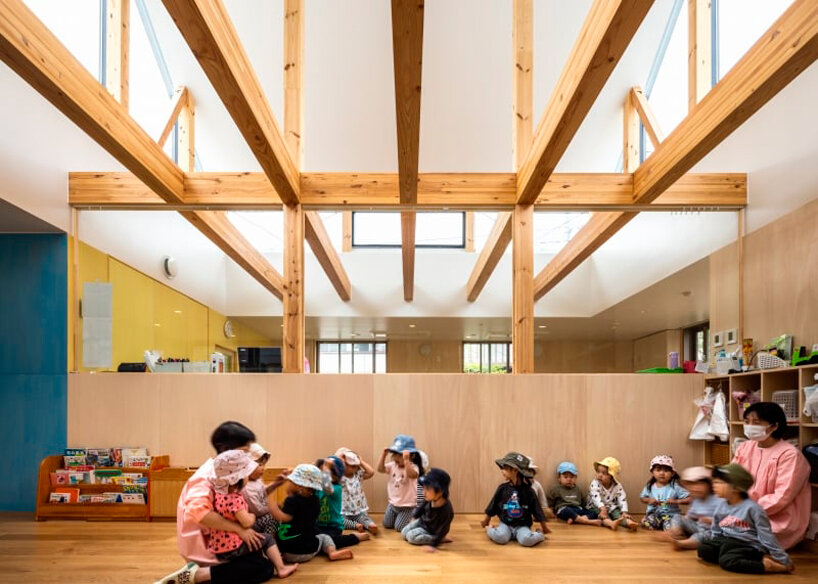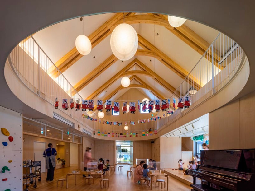 wood envelops the entire building in a child-friendly, inviting ambiance