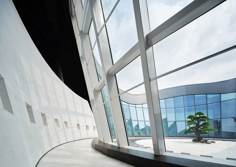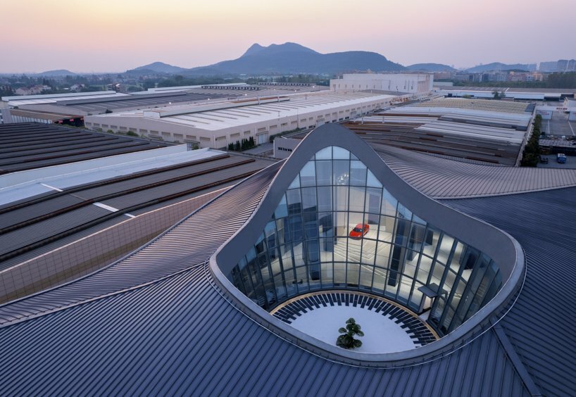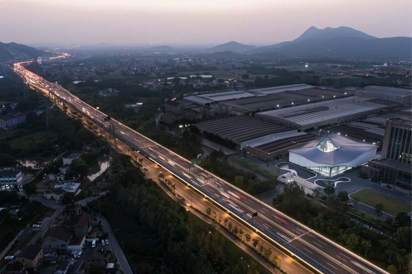Shanghai and Taipei-based architecture firm CROX has completed the headquarters for ceramic tile company Nabel in Hangzhou, China. Drawing influence from the historical background and topography of the region, the team has designed a brand culture exhibition hall housed under a flowing mountain-shaped roof.