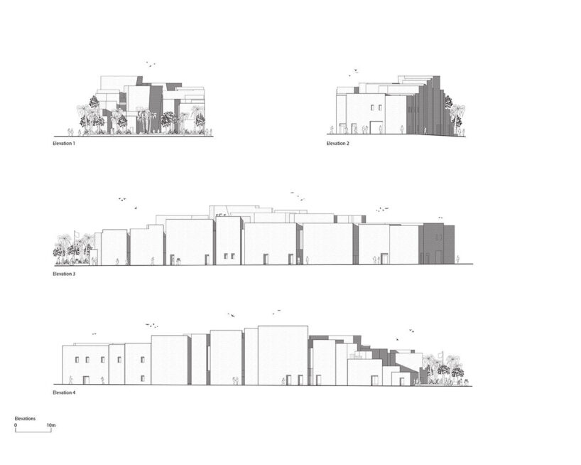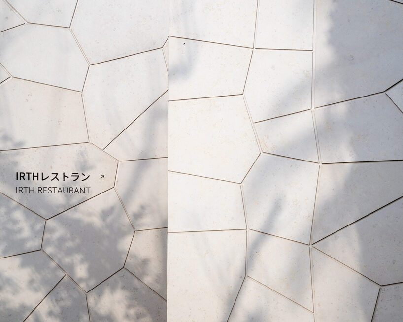 the facade is made from a lightweight Saudi stone composite and can be efficiently deconstructed