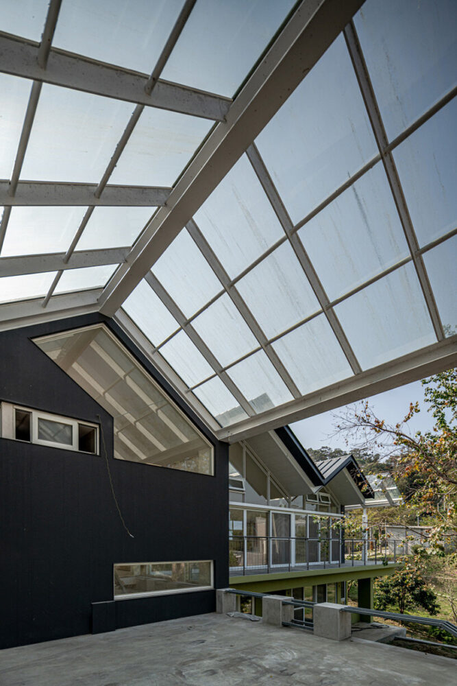 wrapped by the mountainous landscape in hsinchu, taiwan, the ‘under the roof’ house by emerge architects generates an open, continuous living environment topped by a series of four distinctive gable roofs. the design draws from the archetype image of a home, reinterpreting familiar residential forms and volumes and blending seamlessly with the natural surroundings. four continuous gable roofs top extroverted residence by emerge architects in taiwan