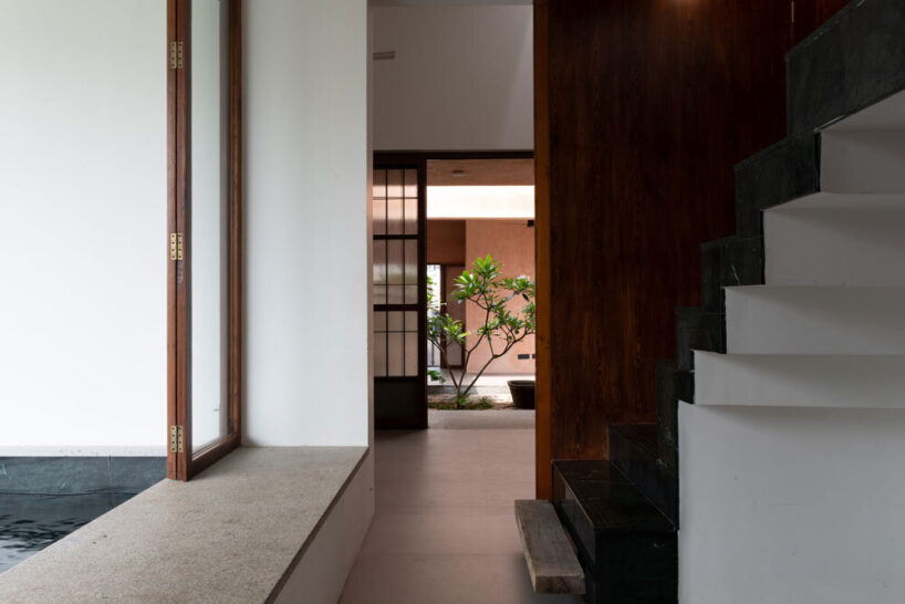 the linear courtyard filters light, allowing soft, dappled illumination