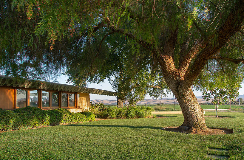 Sited amid acres of agricultural land in Los Banos, California, Frank Lloyd Wright’s 1961 Fawcett Farm hits the market at $4.24 million. Spanning 375 sqm, the gated residence originally belonged to renowned Chicago Bears player Buck Fawcett before Ken & Carrie Cox, its current owners, came into the picture. Upon their request, Fawcett Farm underwent a multi-award-winning and extensive restoration consulted by the architect’s grandson, Eric Lloyd Wright. Today, tucked within a peaceful island of greenery, the refreshed property stands ready to become someone else’s dream home.
