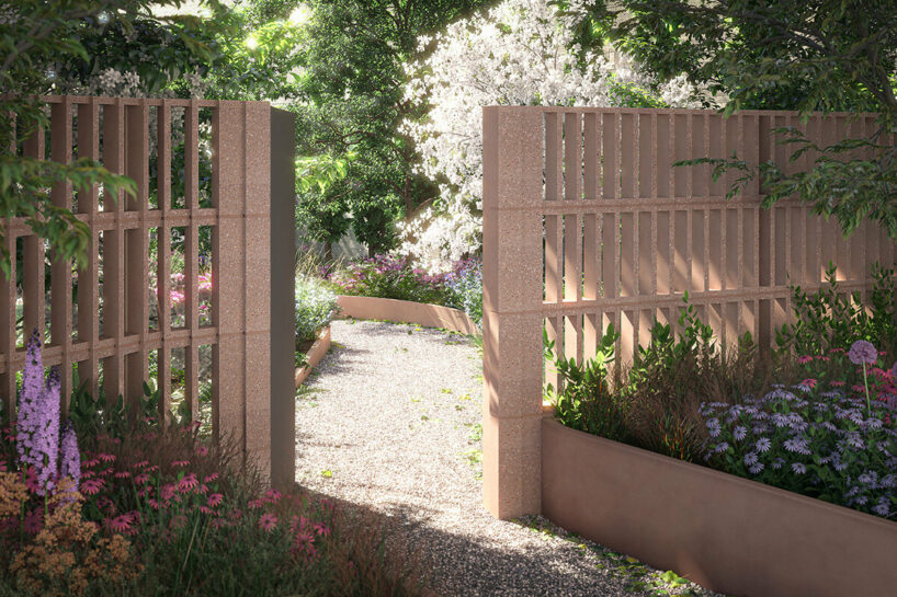 the project sits like a ring placed over the terrain, with its funnel-like roof forming a shaded perimeter walkway and an introverted core.