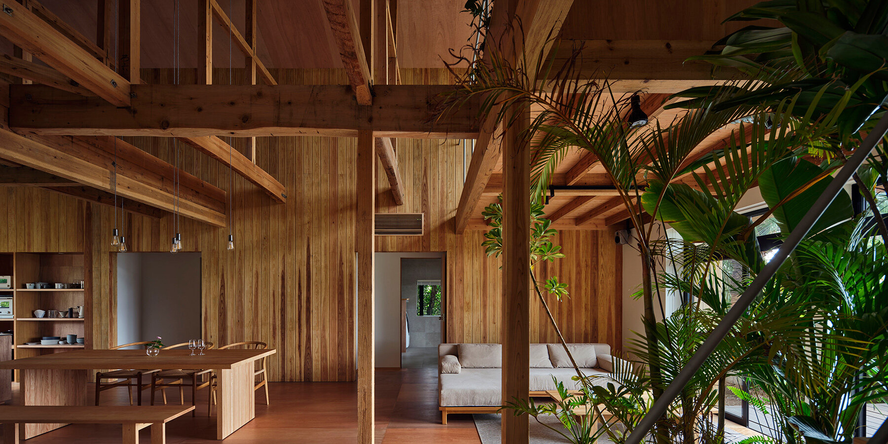 openings are positioned to frame surrounding greenery like paintings
