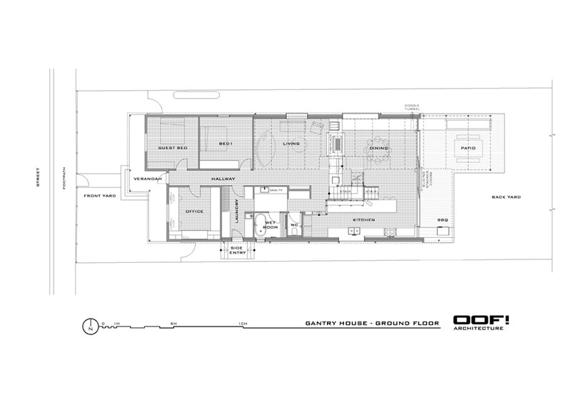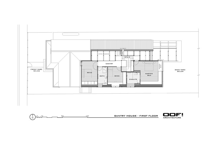 OOF! architects integrates folded perforated steel stairs and gantry walkway