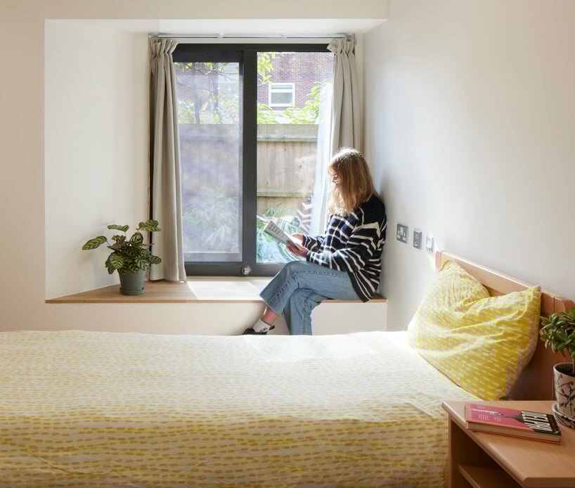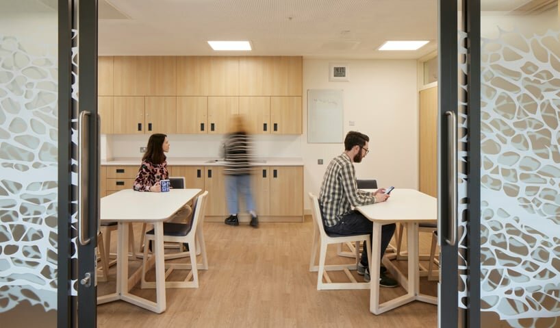 the project sits like a ring placed over the terrain, with its funnel-like roof forming a shaded perimeter walkway and an introverted core.