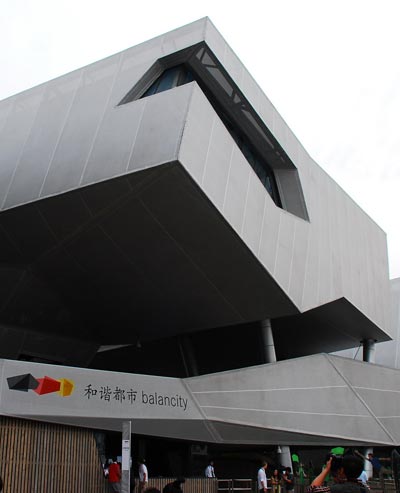 the project sits like a ring placed over the terrain, with its funnel-like roof forming a shaded perimeter walkway and an introverted core.