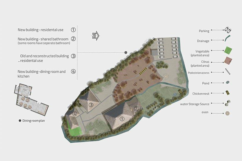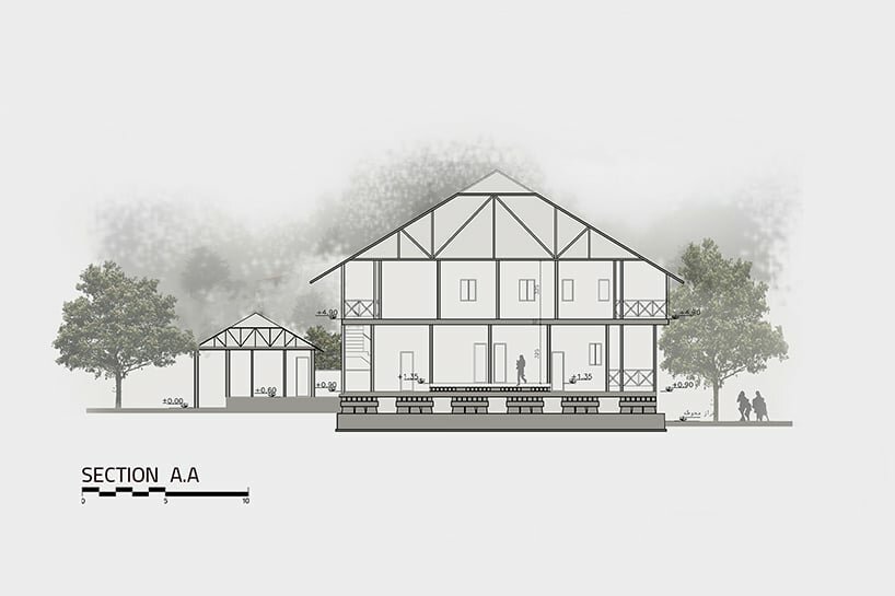 Opting for an accommodation that presents a comprehensive approach to Gilan’s local architecture, the resort construction meets the needs of a touristic homestay while providing an immediate connection to the surroundings and an insight into the cultural context. The frame applies repurposed timber beams for the structure and the traditional layered foundation system, while the four-slope roof lays out plant threads and twigs sourced from around the region.