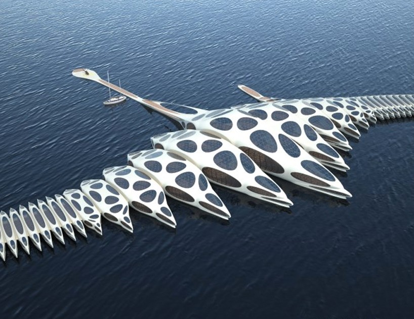 this conceptual project by architect engineer gianluca santosuosso explores the idea of a self sufficient, unique hotel with the ability to adapt and move with the ocean currents. called the ‘MORPHotel’ the floating ecosystem is developed with a linear, spinal structure composed of individually connected capsules hosting rooms and luxury facilities.