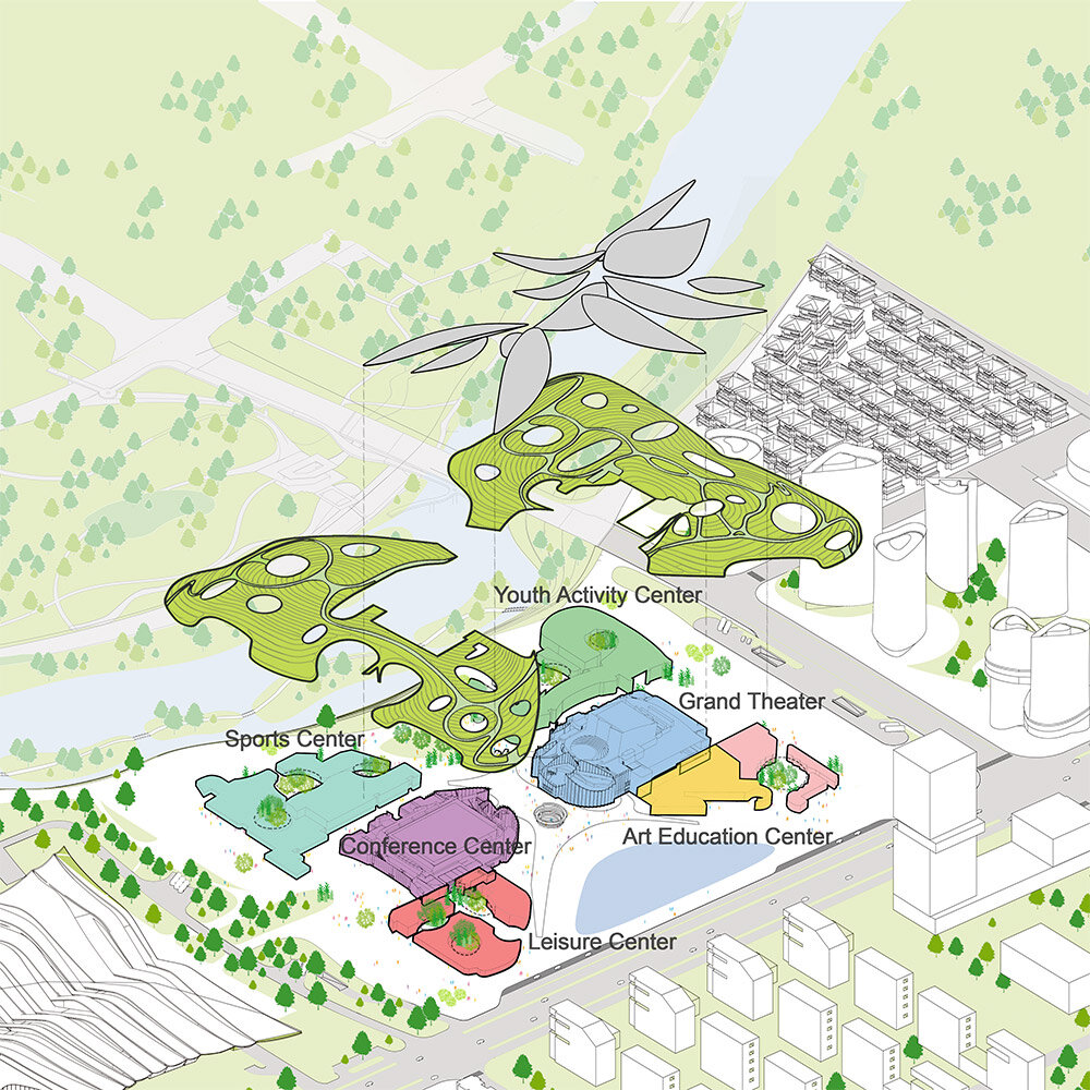 the facilities are nestled beneath a white-tiled roof that mimics the contours of the adjacent hill