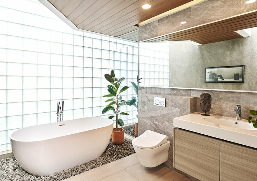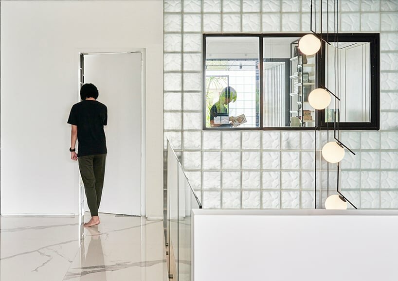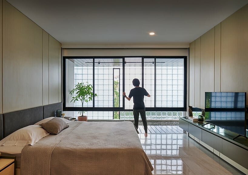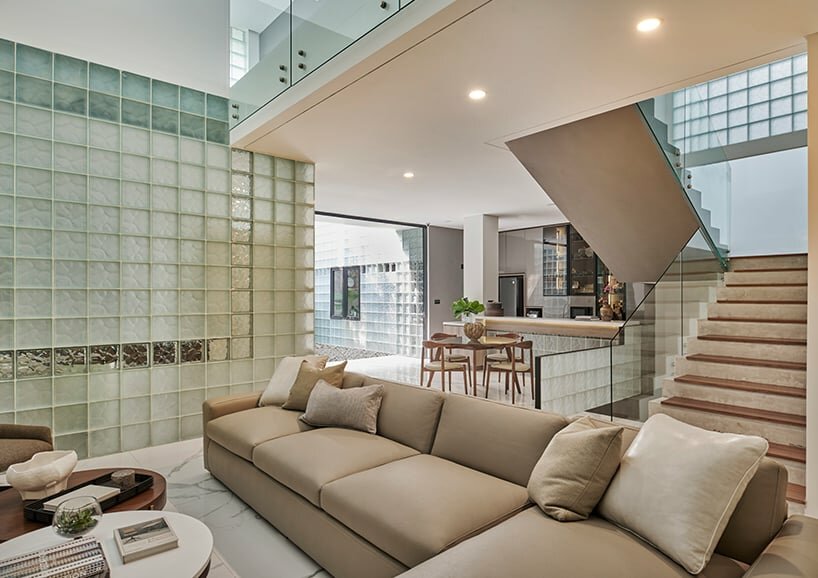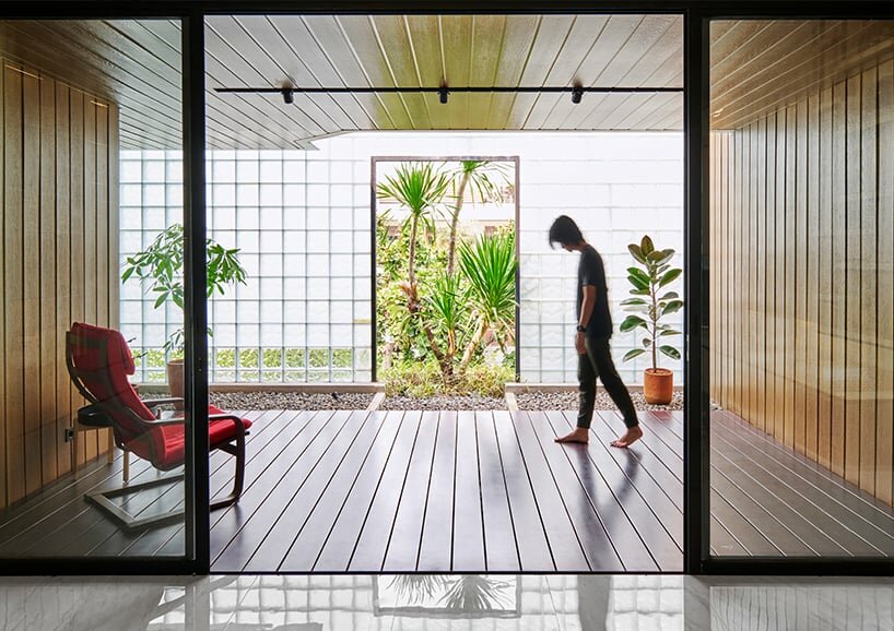 the project sits like a ring placed over the terrain, with its funnel-like roof forming a shaded perimeter walkway and an introverted core.