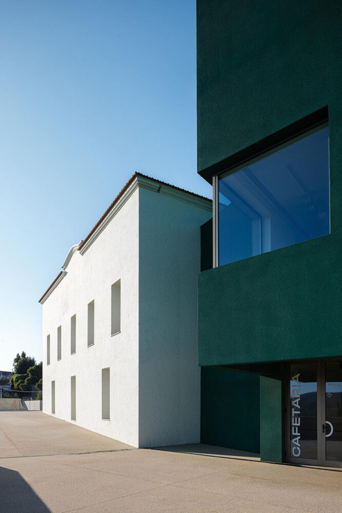 the project sits like a ring placed over the terrain, with its funnel-like roof forming a shaded perimeter walkway and an introverted core.