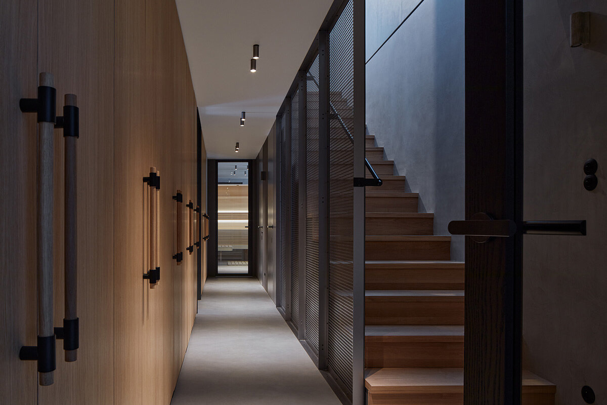 Formafatal’s interiors embrace simplicity with materials like wood, black rolled steel, and perforated sheet metal