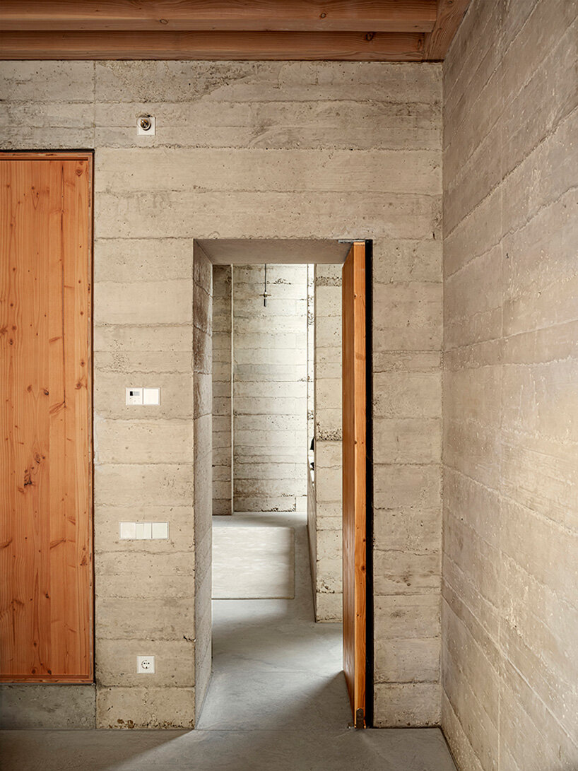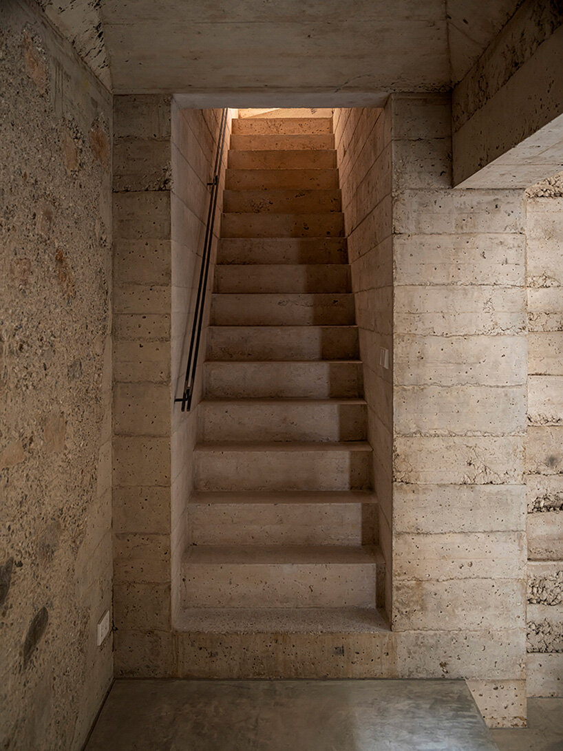 thick, low-cement concrete walls provide thermal stability and absorb irregularities of the plot