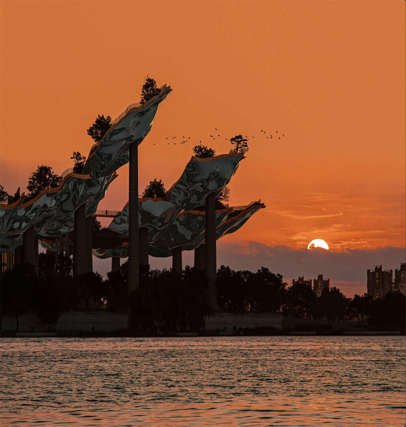 UPDATE October 21st, 2025: The transformation of Nodeul Island officially begins, following a groundbreaking ceremony on October 21st, 2025, attended by citizens and officials. The event featured live music, augmented reality experiences, and interactive displays revealing new details of Heatherwick Studio’s Soundscape design. Commissioned by the Seoul Metropolitan Government, the project envisions a new topography dedicated to South Korean music and public recreation. Alongside the arts center and public beach, the development will introduce recording studios, small concert halls, a waterfront amphitheater, a K-pop experience center, a music café, an anechoic chamber, and a karaoke bar. At its heart, a 1.25-kilometer elevated trail, shaped by the patterns of soundwaves and Seoul’s mountain contours, will loop in a figure-of-eight, offering floating rest points and panoramic views of the Han River. ‘Soundscape will be somewhere you can breathe and feel alive. An invitation to listen, discover, and connect with your fellow Seoulites,’ shares Thomas Heatherwick. Construction will unfold in phases to maintain public access, with completion now slated for 2028.