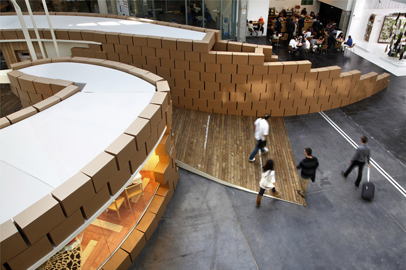 cardboard boxes contrast the white walls bringing attention to the humble material image © pedro martinez