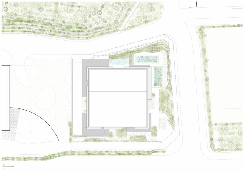 The architects at Herzog & de Meuron drew inspiration from traditional Korean garden principles, incorporating elements like Forest, Earth, Water, and Diorama into the design of the garden. It harmoniously interacts with the building’s architecture to create a cohesive experience blending indoor and outdoor spaces. Mineral blocks within the garden frame different scenic views, offering varied perspectives to visitors. To realize this vision, the master plan involves significant changes in the existing landscape by excavating the area. This results in a terraced landscape and the newly created building spaces are crafted as mineral volumes. These blocks serve different purposes: the northeastern block houses the lobby, shop, and library near the main entrance; the southeastern one, facing the garden, accommodates a small cafe accessible from both the garden and the street corner. Other functions like elevators, fire escape routes, and special exhibition areas are allocated among these volumes. Vertical circulation routes link the exhibition levels through fire escape staircases and elevators on the south side. Additionally, the stepped auditorium acts as an open connection between levels, seamlessly integrating into the special exhibition program.