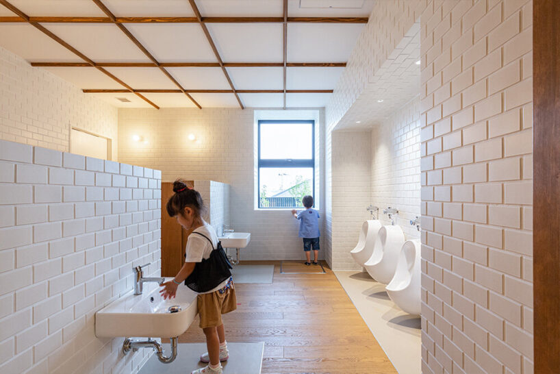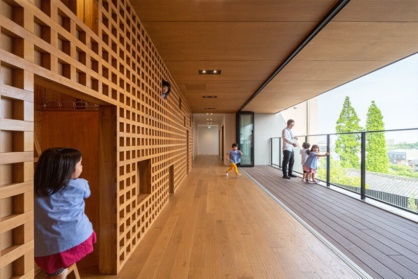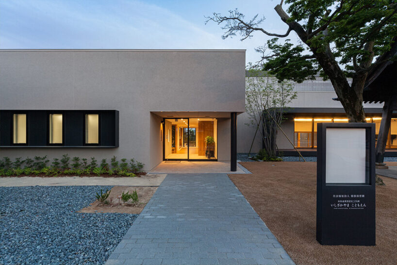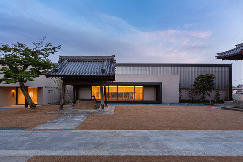 the project sits like a ring placed over the terrain, with its funnel-like roof forming a shaded perimeter walkway and an introverted core.