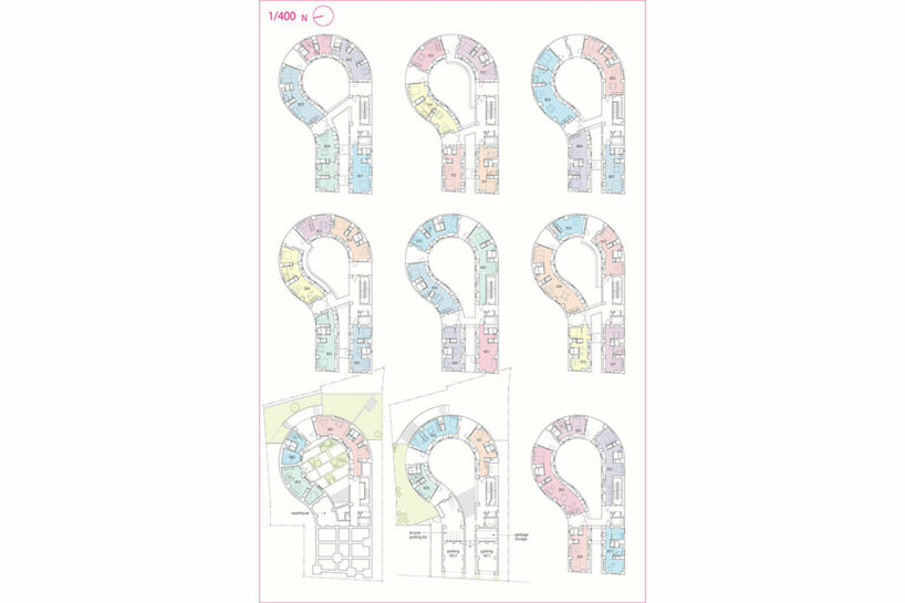 the new apartment complex in Tokyo addresses challenges of a curved plot and limited natural light