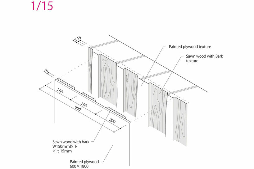 The formwork for the central courtyard incorporates a sustainable design element. It is constructed from Japanese cedar logs sourced from the Wooden Station Project in Sammu City, Chiba. This initiative aims to support healthy forests by acquiring thinned wood and forest residue from local owners. The forestry industry has recently faced challenges due to fungal diseases, which weaken and permanently mar trunks. By finding value in these materials, Hiroyuki Ito Architects sought to contribute to sustainable forestry practices.