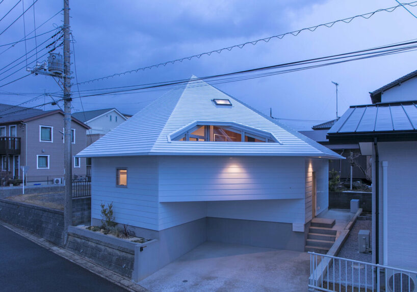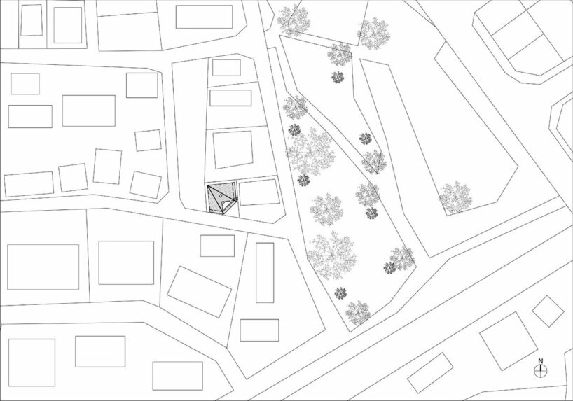 the project sits like a ring placed over the terrain, with its funnel-like roof forming a shaded perimeter walkway and an introverted core.