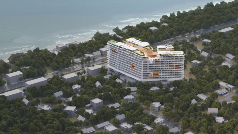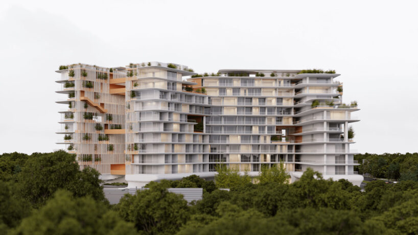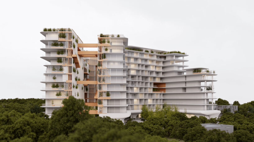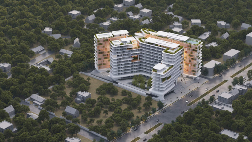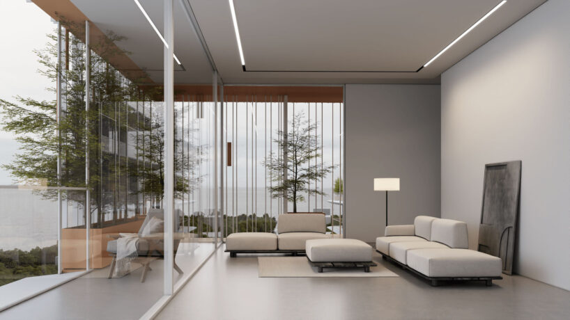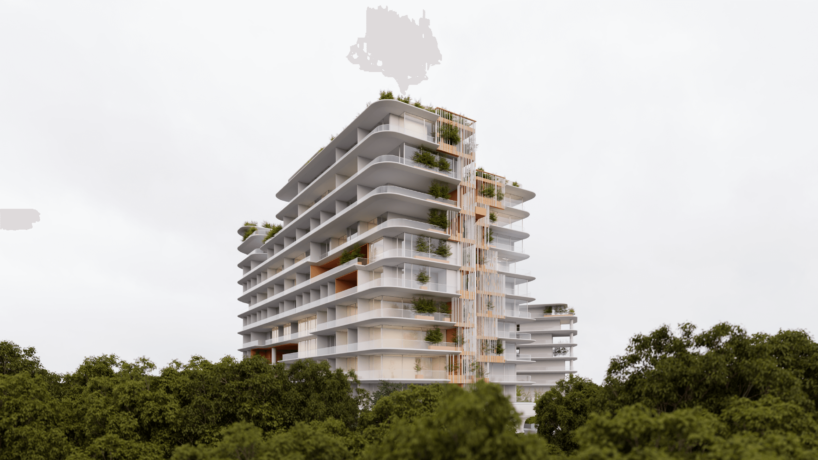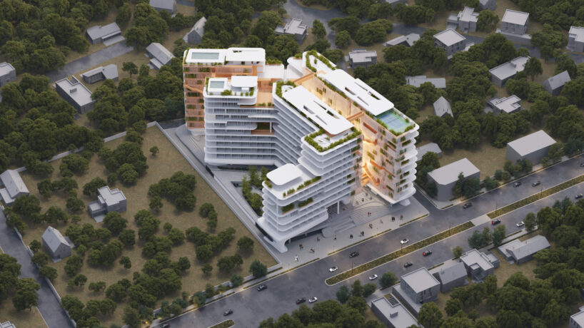 Shabahang Architecture Office’s design for Link Residence focuses on establishing a connection between the building and its surrounding environment in Mazandaran, Iran, as well as enhancing its relationship with the city. The central concept involves expanding the building’s mass towards the main boulevard, creating a gap deep into the volume. This gap serves as a wide passage that not only facilitates interaction with the public but also transforms into a connection between the residential space and the commercial perimeter of the site, becoming a ‘city pass.’