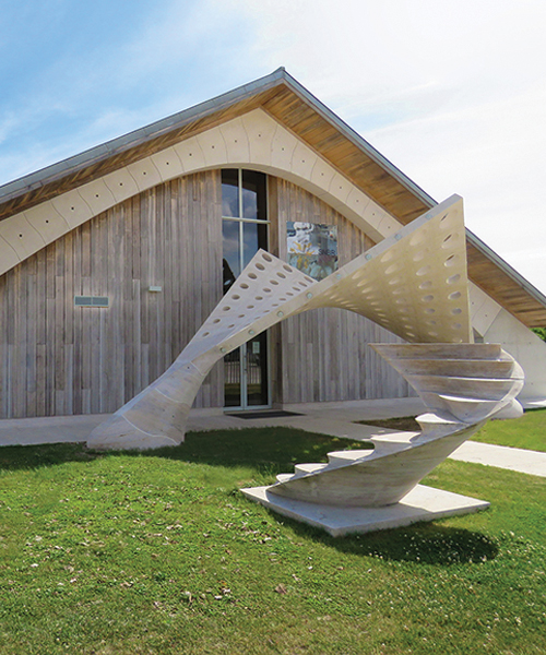 italian architects of the new fundamentals research group (polytechnic university of bari) and engineers from roma tre university, have designed the ‘hypargate’ – the first discrete hyperbolic paraboloid made of stone. the installation revives the ancient art of stereotomy – a process that draws upon geometrical knowledge and techniques of cutting blocks of stone into complex frameworks.