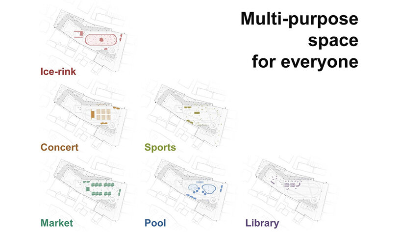 a continuation of the existing rock formations, the hotel is articulated as a series of stepped horizontal planes, courtyards, and gardens.
