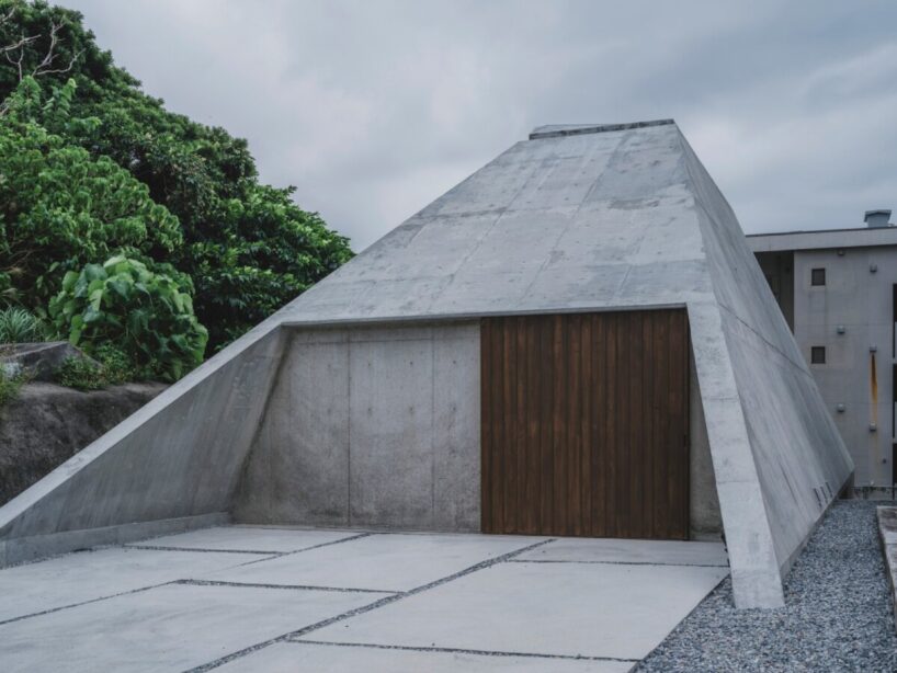 the project sits like a ring placed over the terrain, with its funnel-like roof forming a shaded perimeter walkway and an introverted core.