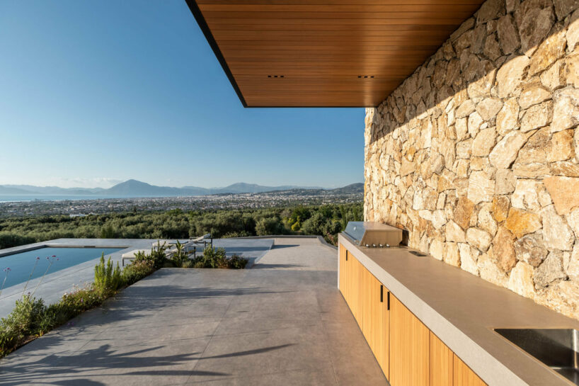 the project sits like a ring placed over the terrain, with its funnel-like roof forming a shaded perimeter walkway and an introverted core.