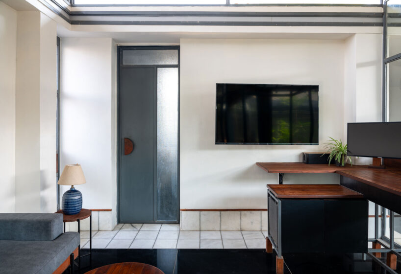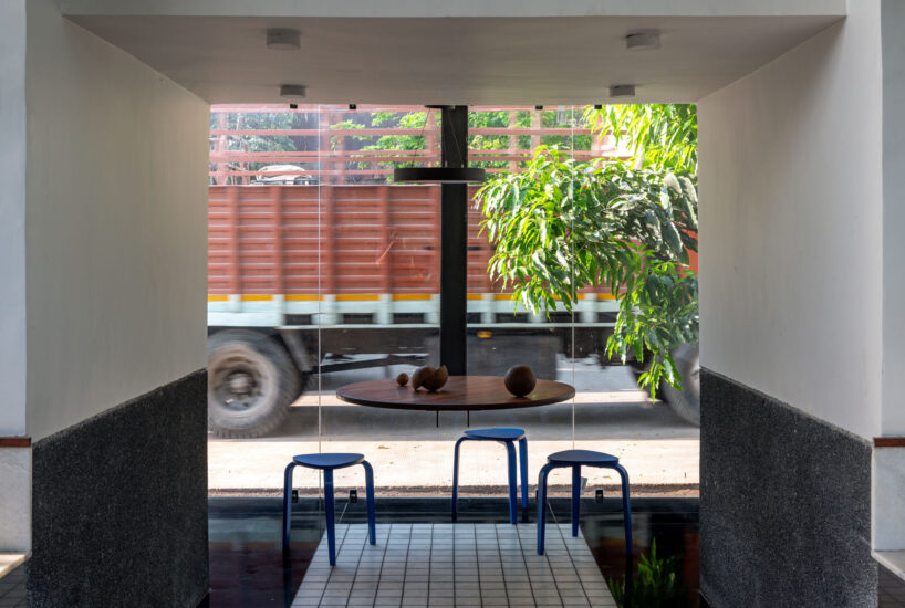 the lush foliage alongside admin space and the waiting area creates a refreshing contrast to the industrial context