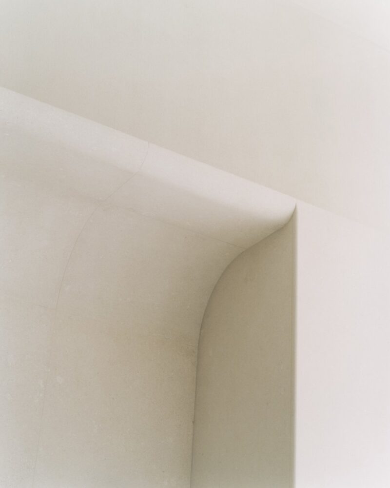 the project sits like a ring placed over the terrain, with its funnel-like roof forming a shaded perimeter walkway and an introverted core.