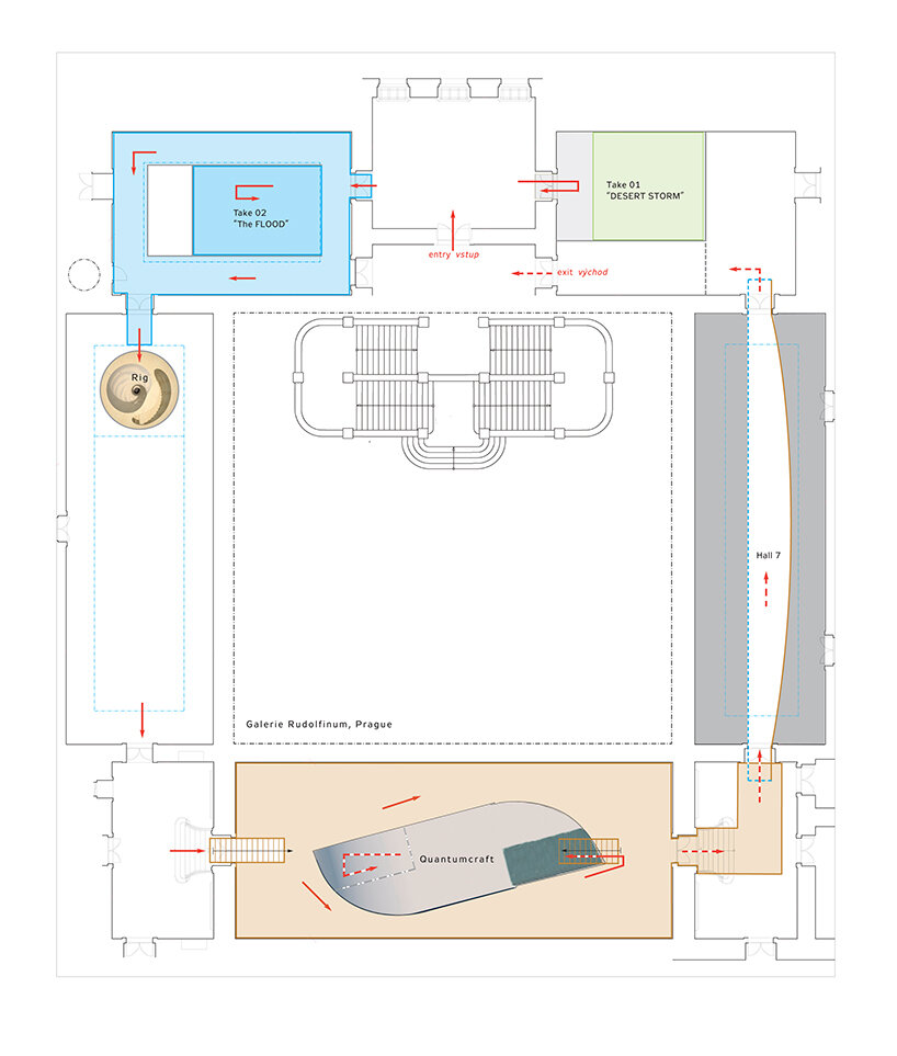 the project sits like a ring placed over the terrain, with its funnel-like roof forming a shaded perimeter walkway and an introverted core.