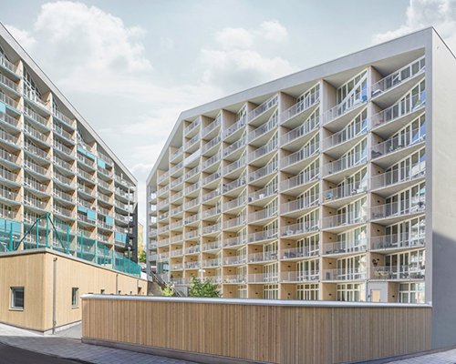 ‘västermalms atrium’ is a large-scale residential project by swedish architecture firm joliark. located in kungsholmen, in central stockholm, the twin buildings include 165 apartments, underground parking facility, kindergarten, and several other auxiliary spaces.