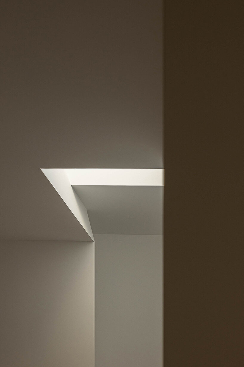 the project sits like a ring placed over the terrain, with its funnel-like roof forming a shaded perimeter walkway and an introverted core.