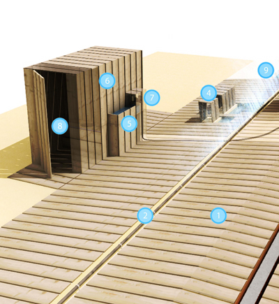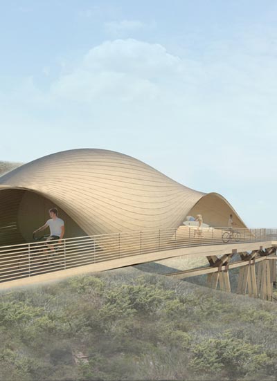 a continuation of the existing rock formations, the hotel is articulated as a series of stepped horizontal planes, courtyards, and gardens.