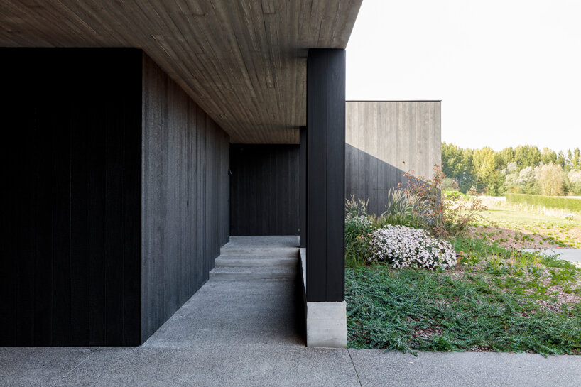 charred timber and nature surround JUMA's villa in the flemish ardennes