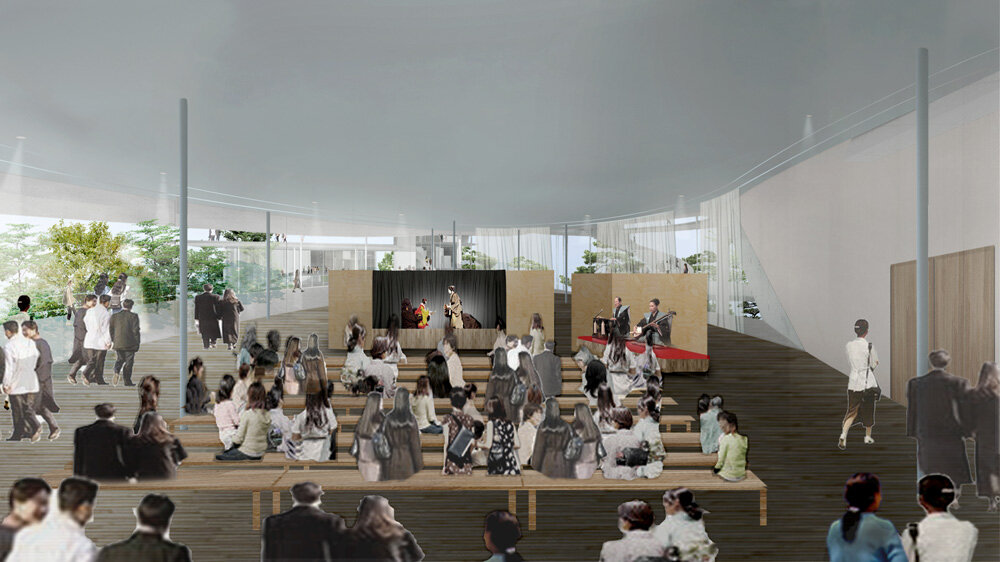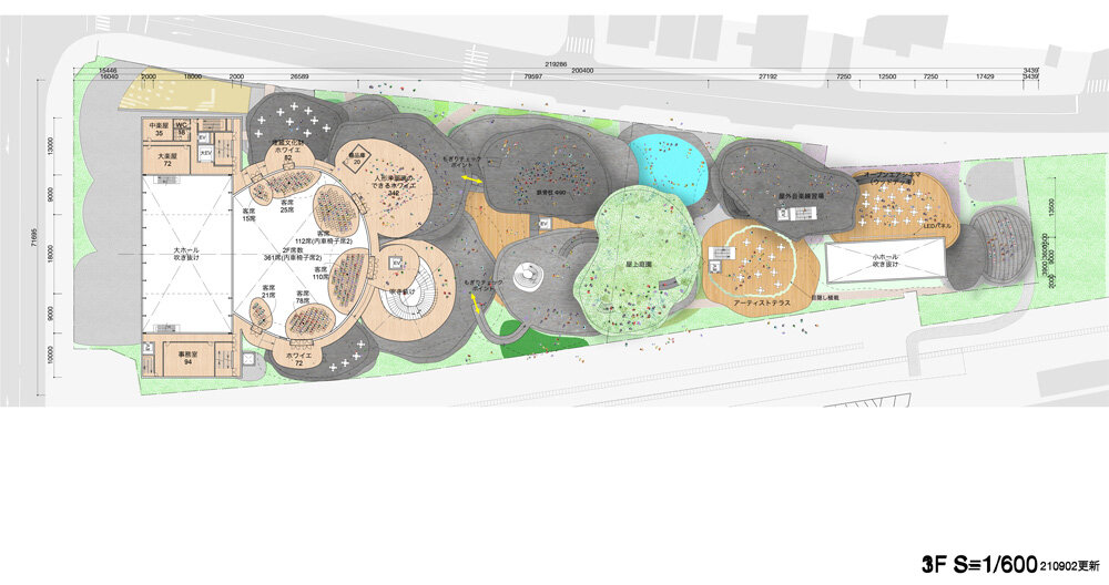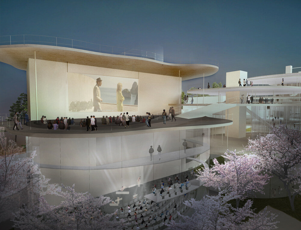 a continuation of the existing rock formations, the hotel is articulated as a series of stepped horizontal planes, courtyards, and gardens.