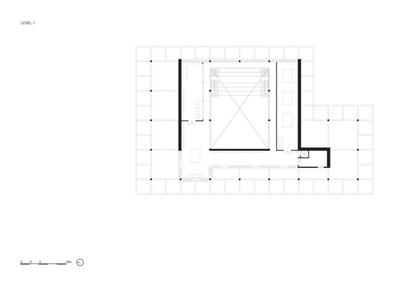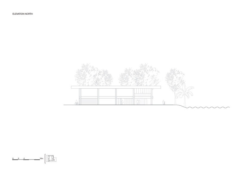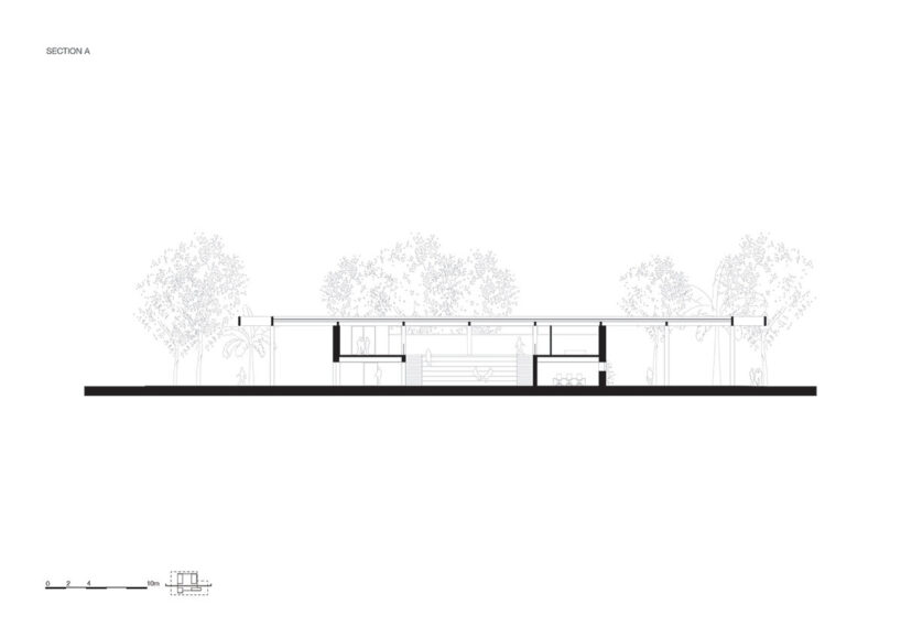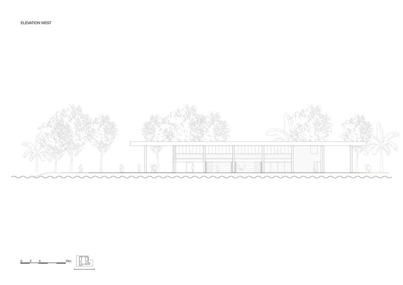 durable cumaru wood shapes the structure, which includes multifunctional spaces and an open atrium
