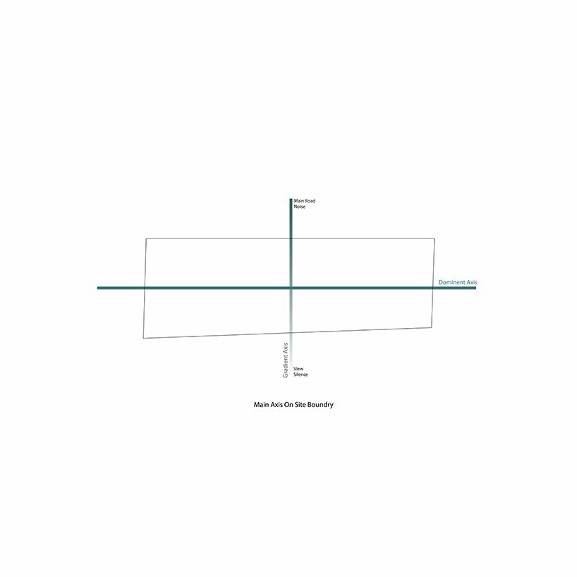 the project sits like a ring placed over the terrain, with its funnel-like roof forming a shaded perimeter walkway and an introverted core.