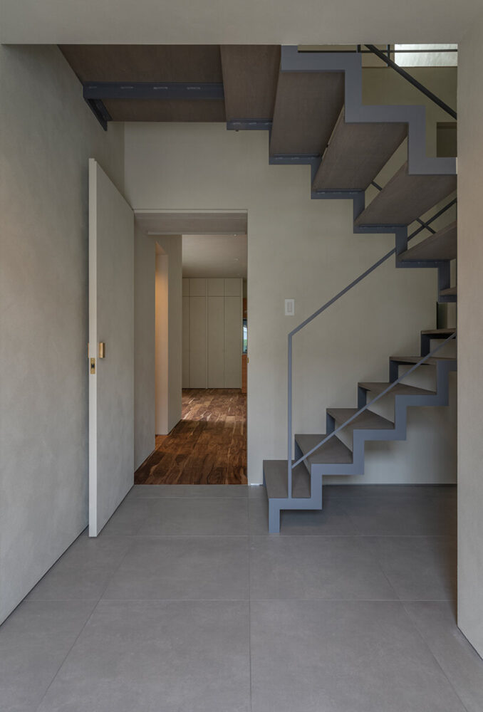 in light of the clear distinctions found in spatial organization, one element binds the entire house together: light. for example, a glass-floor corridor on the second floor lets the sun rays coming from the exposed roof to penetrate all the way down to the living room. complementing the natural brightness falling from the roof, various lighting features that change with time and season are also delivered to the entire house.