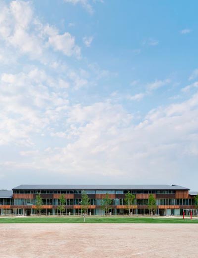 cedar wood clads the exterior of the buildingimage courtesy of teikyo university elementary school