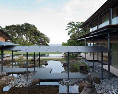 kengo kuma: water cherry houseview over the lower structure and poolsimage © shinkenchiku-sha